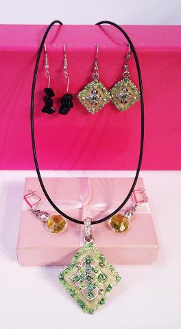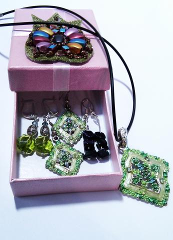 Labai gražus komplektas gerai nuotaikai...Auskarai - 3 vnt. Pakabukas - 1 vnt. Dovanų dėžute.