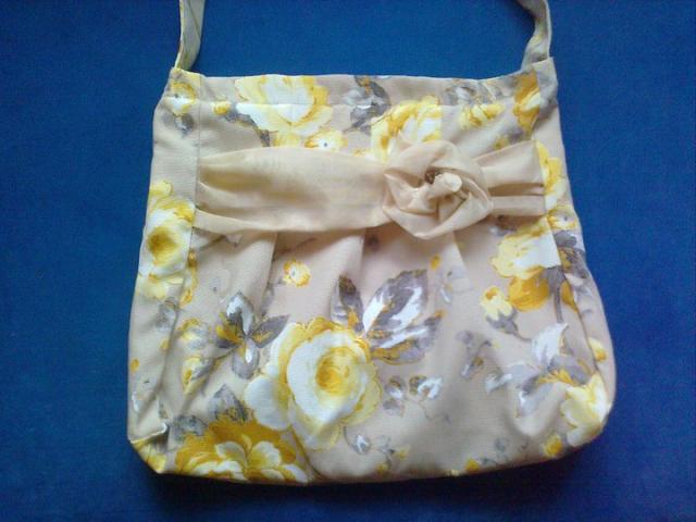 Romantiškas, dramblio kaulo spalvos. Viduje yra pamušalas, vieta mobiliajam telefonui, nedidelis užsegamas skyrelis bei atvira kišenė. Audinio sudėtis: 100 % poliesteris. Išmatavimai: plotis 40 cm; aukštis 36 cm; rankenos ilgis 110 cm. Kaina 55 lt. IR DAUG KITŲ.