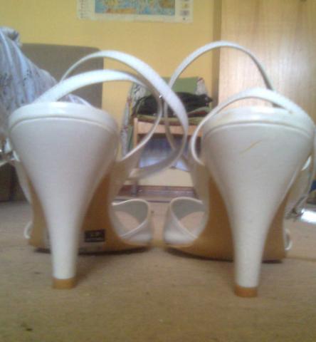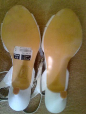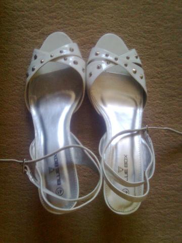 Baltos vasariškos basutės. Kulniukas ~8cm. pirkau už 23eurus Ispanijoje (~80Lt) Buvau užsidėjus gal du kartelius, šiaip nenešioti.Yra vienas įbrėžimas ant kulniuko, nuotraukoje matosi, šiaip nesunešioti. Dar netgi su kaina. Atiduočiau už 40-50Lt (galima derėtis).