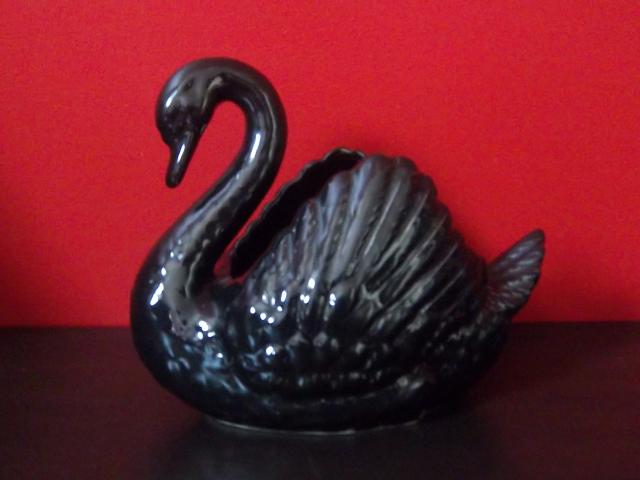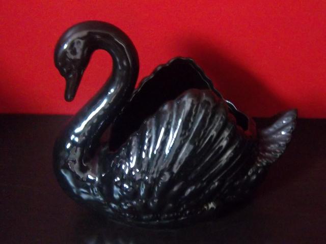 Vintažinė 1950-1970m. gulbė-vaza(vazonas), juoda, 19/16cm, DEVON DARTMOUTH Anglija, būklė puiki