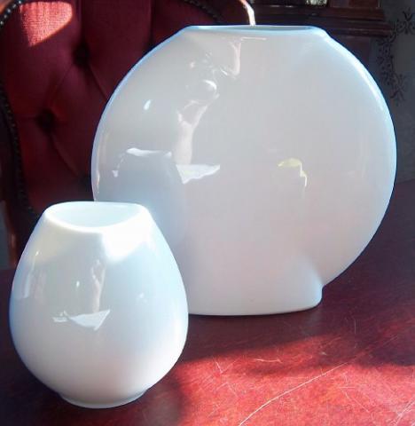 Plokščia balta vaza, 17,5cm aukščio, būklė puiki