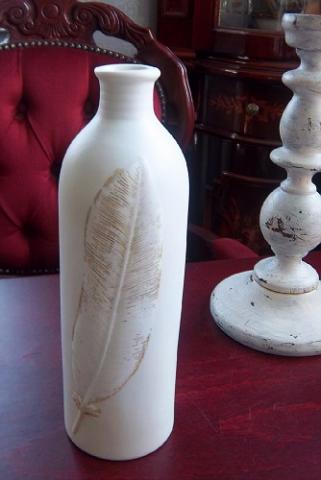Puikios būklės keramikinė vaza su plunksna.Aukštis 21,5cm