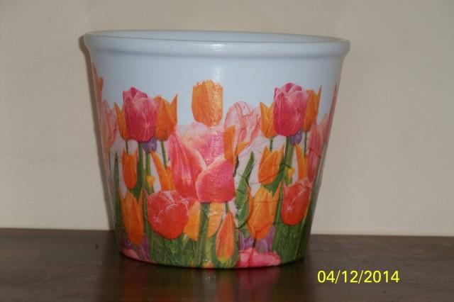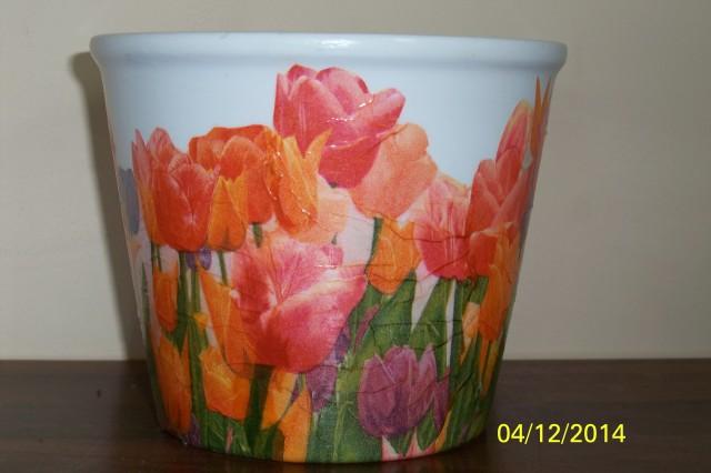 Molinis , dekupažuotas vazonėlis. Kaina su siuntimu. Vienetinis variantas,puikiai papuoš Jūsų namus. Aukštis maždaug 12 cm, skersmuo 14cm.