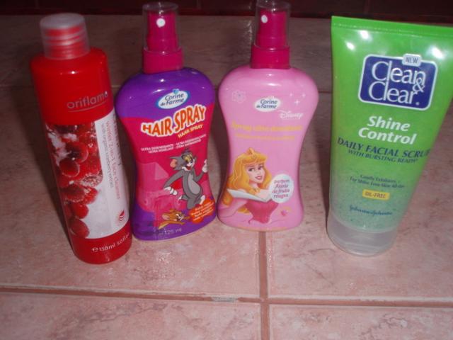 1. oriflame veido valiklis. 2 ir 3. padedančios iššukuoti plaukus priemonės. 4. clean&clear veido valiklis.