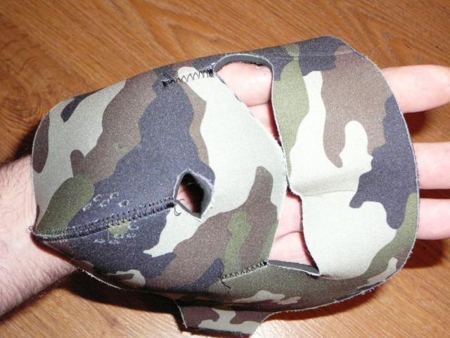 l.mazai naudota kauke nuo vejo,pugos ir t.t. neoprenine,galima naudoti zvejyboje ir medziokleje,is galo susisega lipucke,patogiai priglundanti.