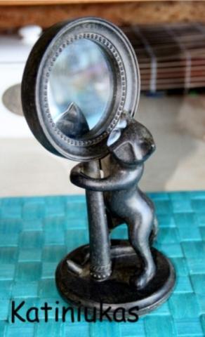 Veidrodis su Katiniuku. Ilgis 20 cm, plotis 10 cm. Kaina 35 lt.