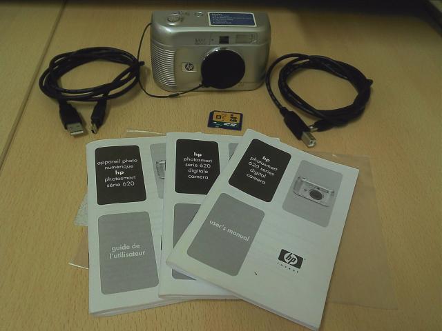 Skaitmeninių fotoaparatų pionierius HP photosmart 620. Dedamos paprastos baterijos. Nenaudotas jau kokie 6 metai. Kortelė 64 mb. Yra knygutės, USB laidai į kompiuterį, printerį. Pridėsiu baterijas. Veikia, nuotraukos tikrai geros kokybės, geriau už betkokį telefoną, tik tiek, kad pixelių nedaug.