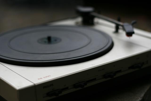 Veikiantis Phillips patefonas su kolonėlem