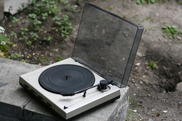 Puikus veikiantis patefonas, užsidarantis dangčiu. Į rinkinį įeina veikiančios kolonėlės. Reikia nusipirkti naują adatėlę, nes sulaužiau.