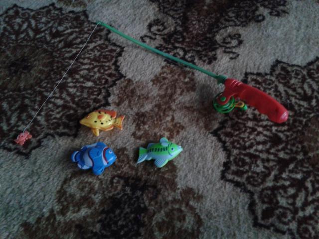 rinkinį sudaro: žaislinė meškerė su " valu" ir prikabintu jauku, ant kurio yra mažas metaliukas, traukiantis magnetą, trys žuvelės, ant kurių uždėti maži magnetukai. Valas gali išsitiesti daugiau nei yra nuotraukoje.