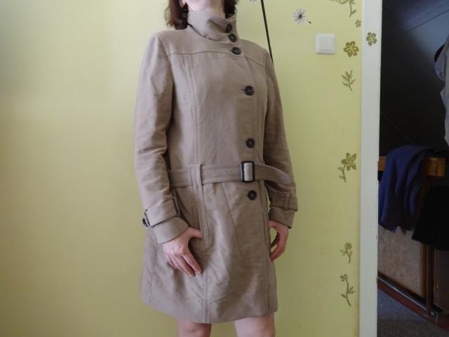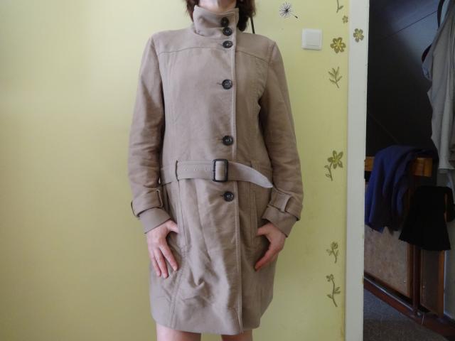 Madingos smėlio spalvos paltukas su pamušalu ilgis 90 tarp pažastų 106 cm rankovė 63 tarp pečių 43 galima skalbti 30 * temperatųroje medžiaga - natūrali medvilnė, realiai - kaip veliūras