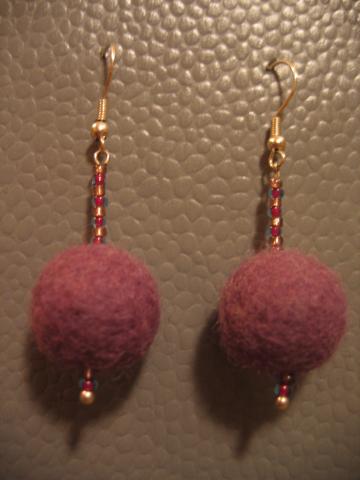 Labai gražūs, velti iš violetinės vilnos auskarai. Galima derėtis.