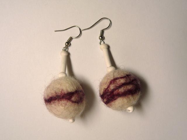 Veltiniai auskarai su porceliano karoliukais. Rankų darbo.