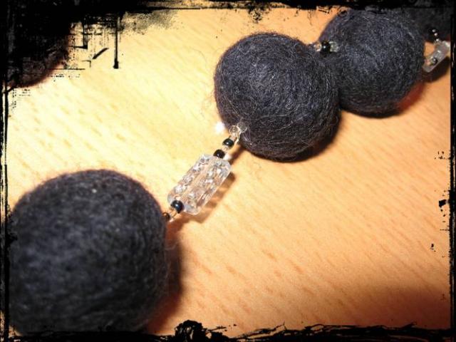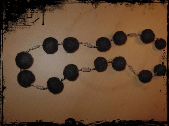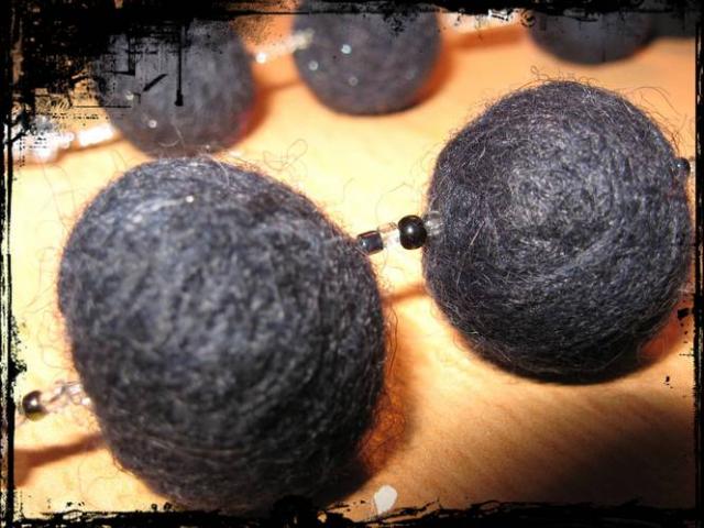 Tamsiai mėlyni trumpi veltiniai karoliai su karoliukais.