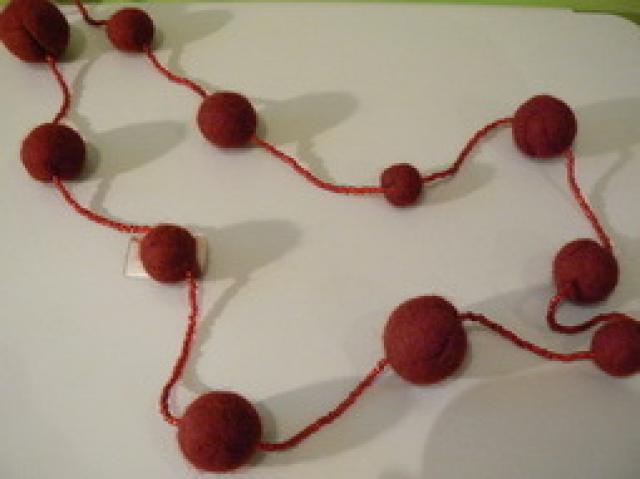 raudoni velti karoliai.