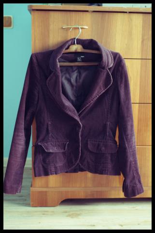 Velvetinis violetinės/burgundiškos spalvos švarkas iš H&M Kokybė gera, neapsivėlęs, be diafektų:} EUR dydis - 38 US - 8 S/M
