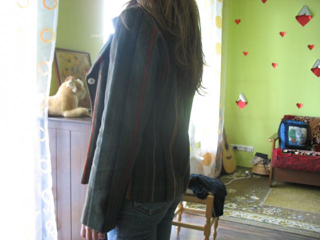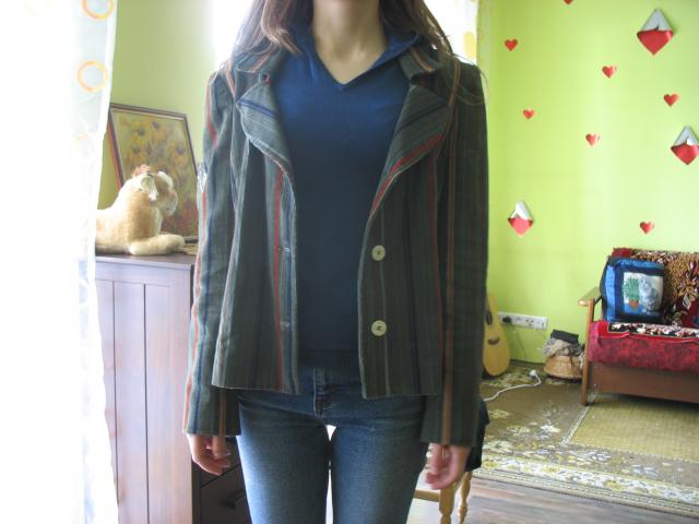 Turbūt M dydis. Man platus ir rankovės ilgos (nuotraukoje palenktos į vidų).