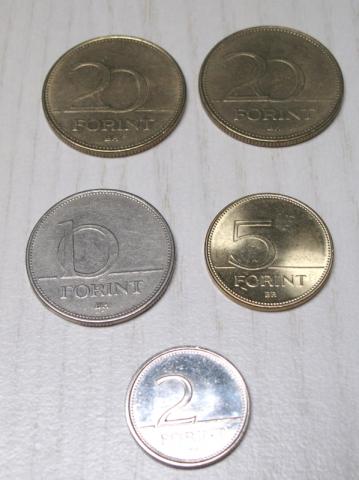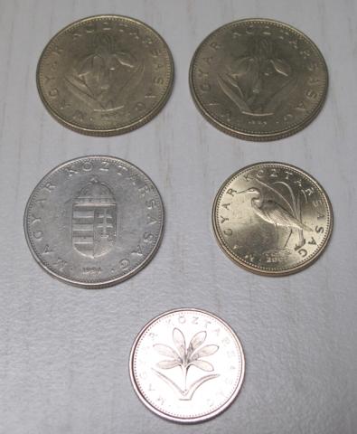 Vengrijos florintai: 20 - 1994 m.; 1995 m.; 10- 1994 m.; 5 - 2007 m.; 2007 m.