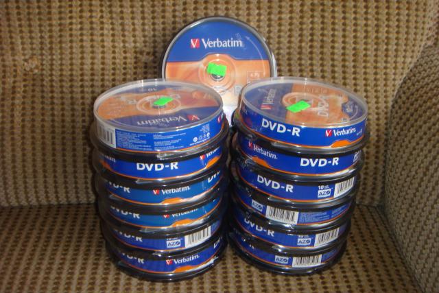 verbatim dvd-r 4.7gb x 10 16x speed, puse kainos - 2.00e vietoj 4.05e uz dezute (10 vnt. ). nauji, nepraplestos pakuotes, is parduotuves.