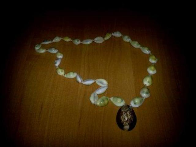 Baltų kriauklių vėrinys, priekyje didelė kriauklė.