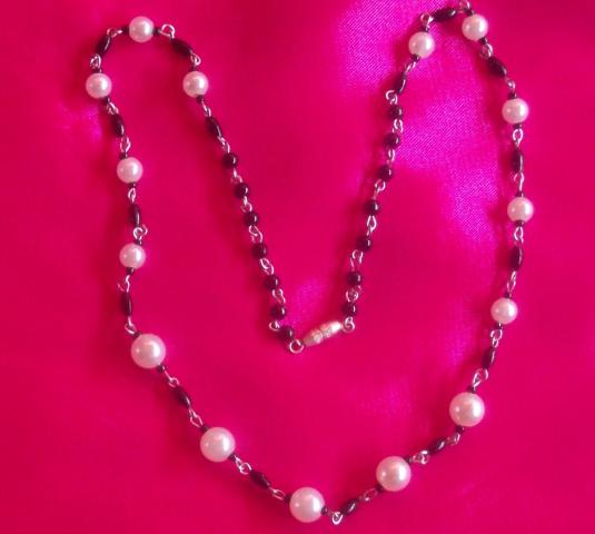 Verinys, ilgis 46cm, uzsegimas pasidabruotas uzsegamas, juodas biseris, krilo perlai 6mm, akrilo perlai 8mm. Kaina 25lt