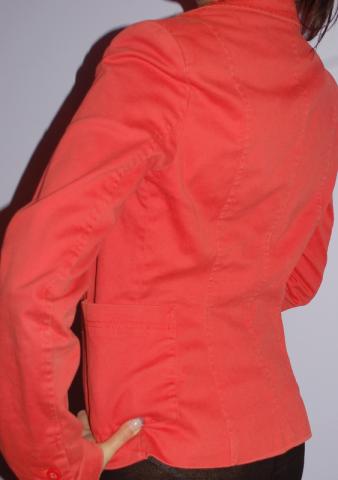 Spalva: tokia lyg oranžinė, į raudonumą. Fotografavau su tamsiai raudona maikute, kad galėtumėte palyginti. Su pamušaliuku, nėra labai plonytis. Dydis S. Fotografuota ant xs-s. Išmatavimai: Visas ilgis - 59cm. Rankovės ilgis nuo pažasties - 47cm.
