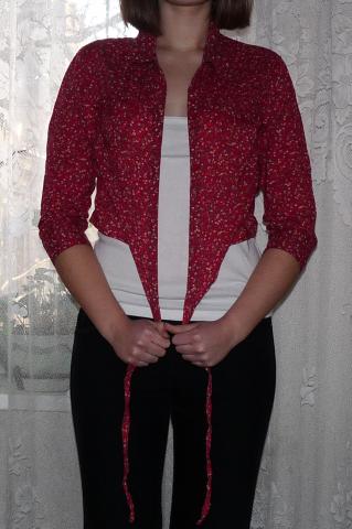 Nerealūs marškinukai, ypač nešioti vasarą :) specialiai surišami. Labai mieli raudoni su smulkiomis gėlytėmis :) jokių defektų