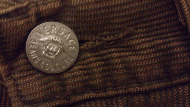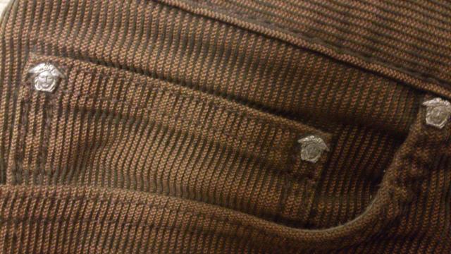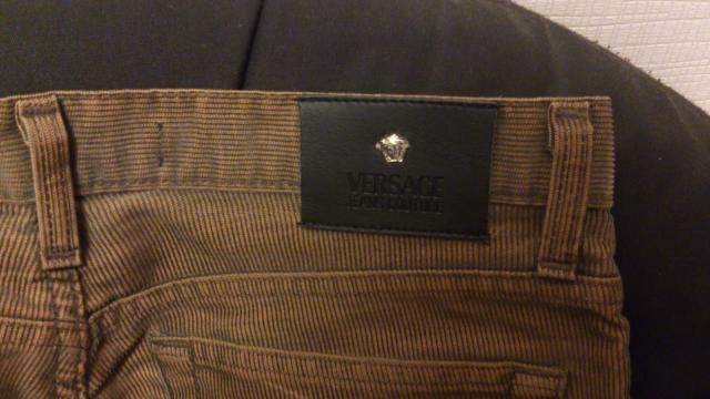Geros būklės firminiai VERSACE velvėtai. Kelnių apimtis - 80 cm, kelnių ilgis - 110 cm. Chameleoniniai.