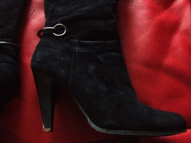 Ilgi virš kelių ilgaauliai. Verstos odos, aptempia blazda, ant kulniuko. Pirkti prieš metus laiko. Kaina 450 lt. Mainai i auskos gamini. mainų kaina 250 lt. gali būti ir su mano priemoka