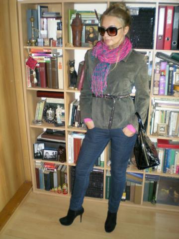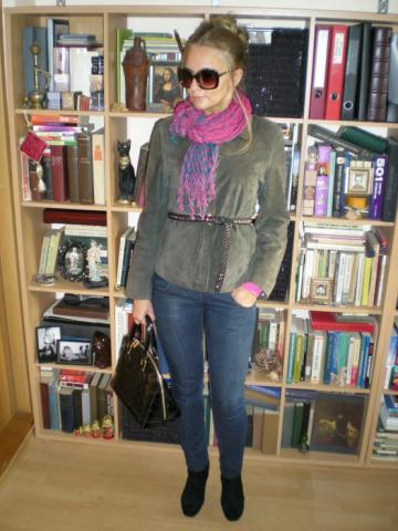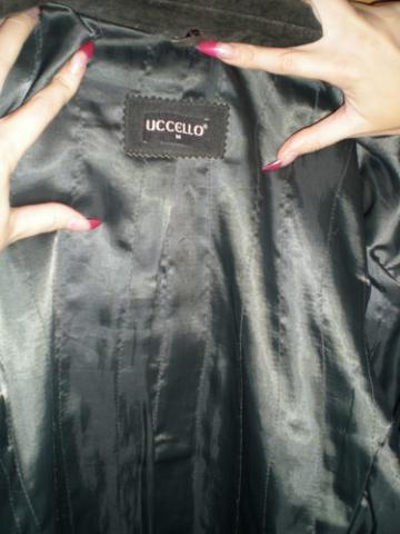Yra mazytes demeles ant nugaros 2mm dydzio, ju absoliuciai nesimato. Saplwa tamsiai zalia-haki. Rankowes ilgis be peties 65cm, Peciu linija 44cm, krutines apimtis 94-98cm, apacioje apimtis 104-107cm, bendras striukes ilgis 58cm.