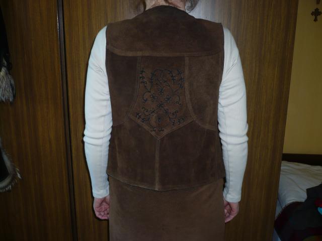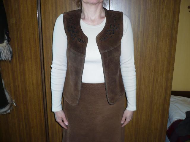 Verstos natūralios odos, siuvinėta juodais siūlais. Modelis nešioja 38-40 dydį 160 ūgio, tai kiek siauroka per krūtinę. Manau tiktų geriau 36-38 nešiojančiom.