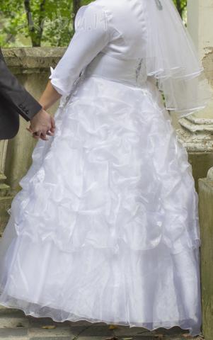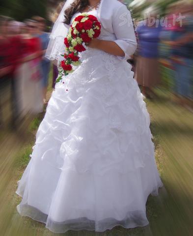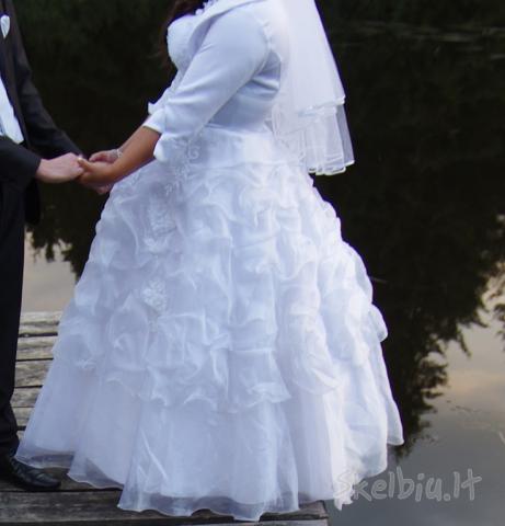 parduodu ispudinga vestuvine suknele su veliumu ir pasijoniu. deveta 1 karta, neplesta, svari, skalbta rankomis. papuosimai is perlu. tinka ivairiu formu panelems.