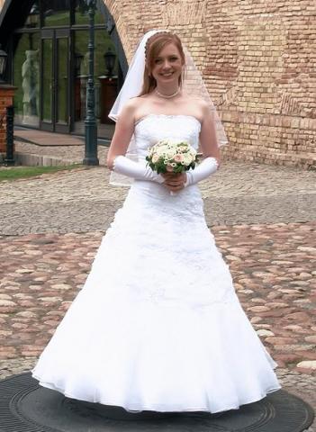 Mielosios, Gal jūs, jūsų draugė, pažįstama ruošiasi didžiajai vestuvių dienai ir vis dar ieško vestuvinės suknelės? Parduodu arba mainau savo suknutę, dėvėta vieną dieną, būklė - puiki. Suknelė vientisa, siuvinėta karoliukais, nugaroje suvarstoma raišteliais. Yra atskiras pasijonis. Spalva - balta. Siūta pagal užsakymą. Pagrindiniai matmenys (orientacinis dydis "S"): Virš krūtinės: 81cm Po krūtine: 83 cm Liemuo: 67 cm Klubai: 93 cm Suknelės ilgis nuo liemens: 103 cm Jei sudomins - daugia