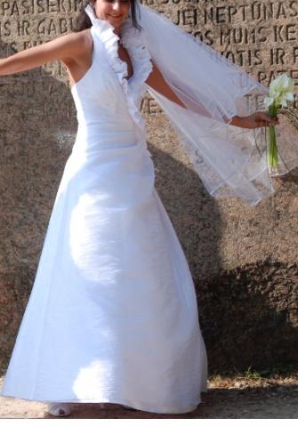 Suknelė vilkėta vieną kartą, nesuplyšusi, išvalyta, dydis maždaug 40 ir didesnis gali būti, nes nugaroje yra raišteliai, kurie norint pasisiaurina arba pasiplatina, ilgis taip pat gali būti koreaguojamas, yra lankas. Mano ūgis 1,81 cm Plačiau tel.860380280 arba rittitutis@gmail.com