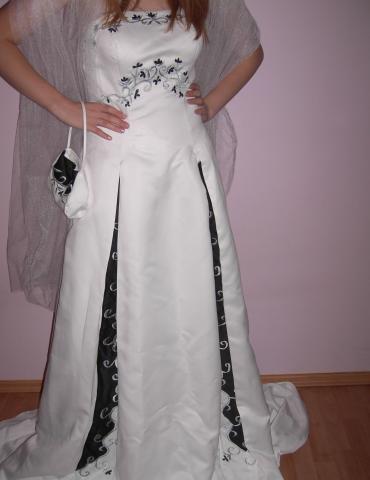 Parduodu naują iš Anglijos parvežtą vestuvinę suknelę.Ji graži tuo kad turi juodus intarpus,yra rankinukas,
