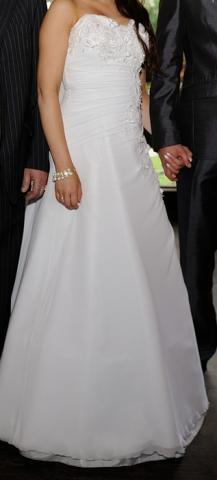 Viena karta deveta vestuvine suknele su karoliukais. Kartu prideciau lanka ir nuometa.
