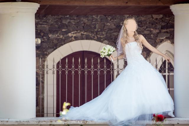 Vieną kartą dėvėta vestuvine suknele. Balta. Dydis xs/34. Būklė - labai gera. Su pasijoniu.