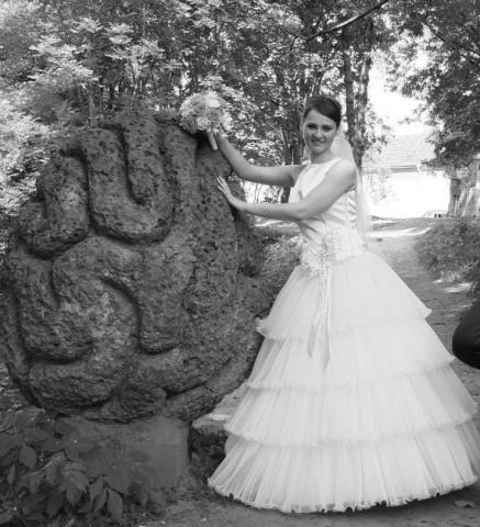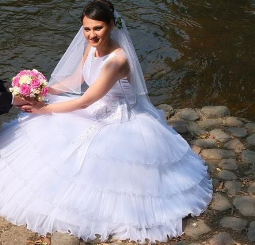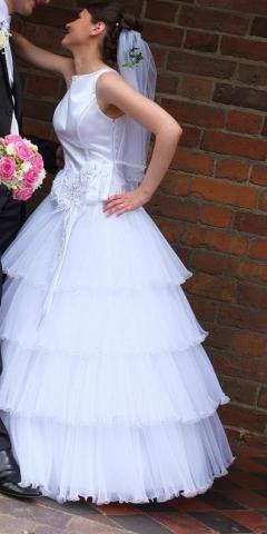 Viena karta deveta balta vestuvibne suknel. Nugara su permatomu tinkleliu papuostu blizguciais. Suknele be korseto, uzsegama uztrauktuku. Ilgi galima koreguoti. Labai tvarkinga. Dydis kazkur 36-38.