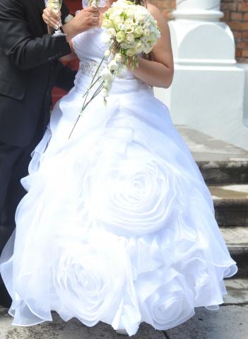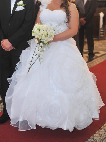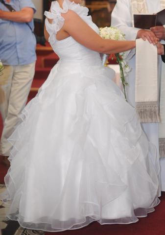 Nuostabi vestuvinė suknelė dėveta tik viena kartą, siūta pagal užsakymą, puikiai tinka stambesnioms merginoms, dailiai priglunda, nevaržo. prie suknelės pridėsiu veliumą ir pasijonį. už papildomą kainą galiu atsiųsti ir į kitus miestus.