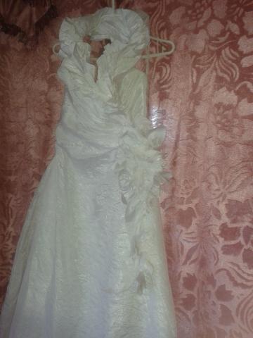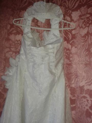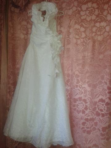 Parduodama viena karta deveta,grazi vestuvine suknele.Dydis M (38-40),baltos spalvos.Yra korsetas,verziamas raisteliu,tad galesite suverzti pagal savo figura ir taip kaip Jums patogu.Suknele patogi,nevarzo judesiu.Jei reiketu yra lankas.Medziaga 100% polisterolis.Sukneles ilgis 160cm.Tiktu iki ~170cm ugio,priklausytu nuo bateliu.Krutines apimtis 90-94cm.Yra nuometas-175cm.Jeigu reiketu galeciau prideti baltas pirstines bei trumpa svarkeli.Sie daiktai ieina i ta pacia kaina.