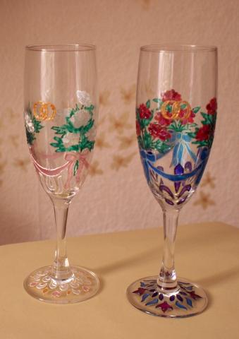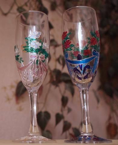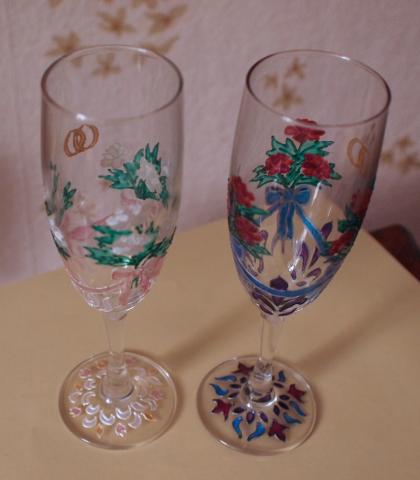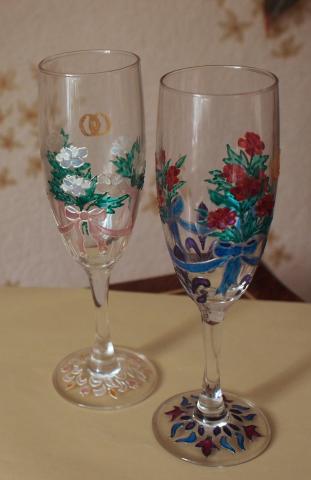 Dekoruotos vestuvinės taurės. Tokių tikrai niekas neturi.