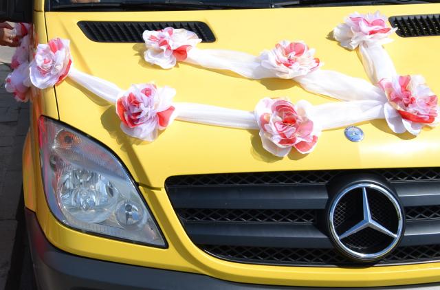 Vestuviniai rankų darbo automobilio papuošimai