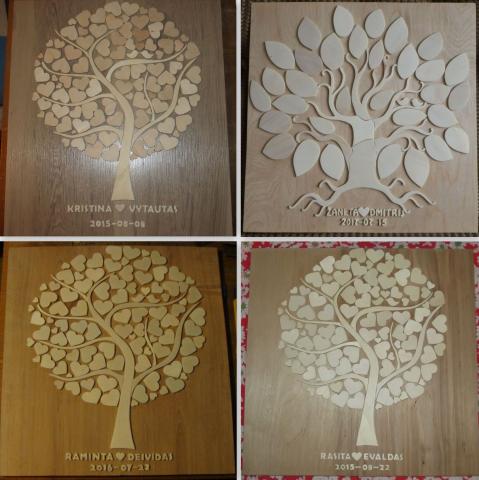 Gaminu vestuvių medžius, dydis ~40x40 cm, kaina 30 Eur. Galimi įvairūs brėžiniai. 100% rankų darbas. Taip pat gaminu skrynutes, medalius ir kt. darbus iš medžio. Domina? Rašykite :)