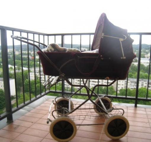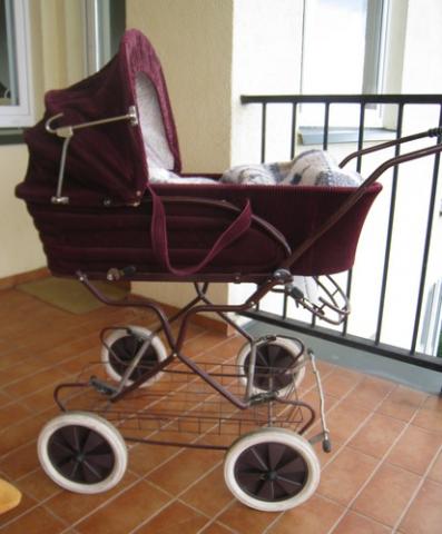 Senoviskas vysniu spalvo vezimelis.tikriausiai kokiu 85'u metu :) bet bukle liuks. labai siubuoja ir svyruoja, kai judini, todel vaikutis greitai uzmiega. Naudojau balkone, kad nereiktu vezimo pastoviai tampyti. Dabar sunelis jau per didelis jam.