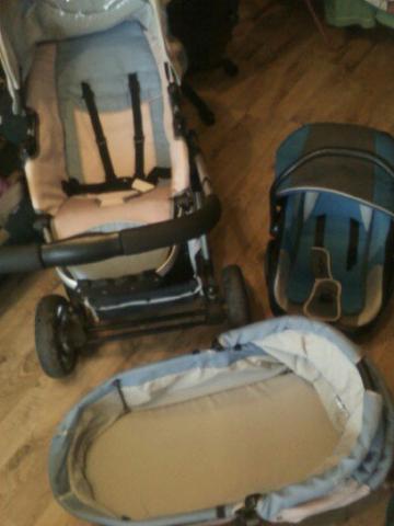 labai geras vezimelis. yra didelis lopsys, sportine dalis, autokedute, talpus prekiu krepsys. priekiniai ratukai sukinejasi arba galima uzfiksuoti,kad vaziuoti tik tiesiai,o galiniai ratai didesni (nera problemu vaziuojant per sniega ar smeli), geri amortizatoriai. visos dalys keiciasi,taigi galima ant remo deti tiek sportine dali,tiek autokedute ar lopsi. visos medziagines dalys nusiima ir galima skalbti. yra tinklelis nuo uodu ir uzklotas nuo lietaus per visa vezimeli. lengvas ir praktiskas.siunciu i kitu