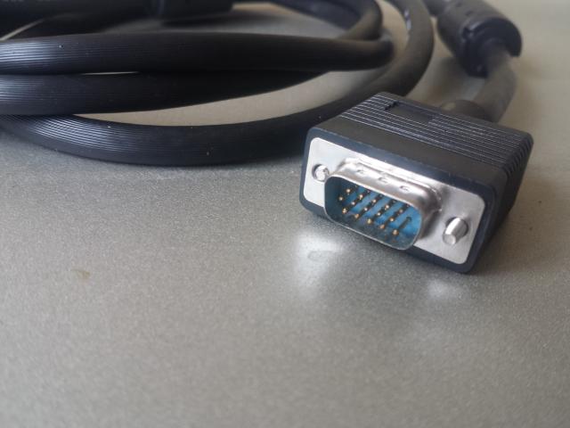 VGA kabelis su feritais 1,8 metro ilgio, labai mažai naudotas ir puikiai veikiantis. Pirktas prieš metus iš Lemonos. Tinka prijungti monitoriui, projektoriui.