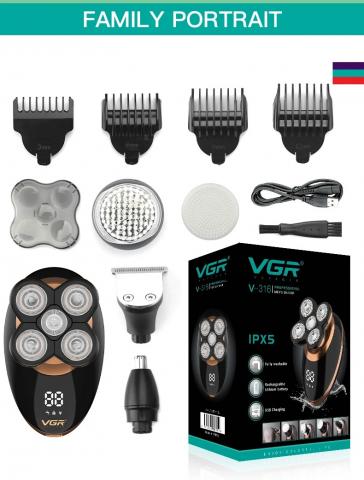 vgr 5 in 1 Elektrinis skustuvas, atsparus vandeniui su 5 skirtingomis galvutėmis
