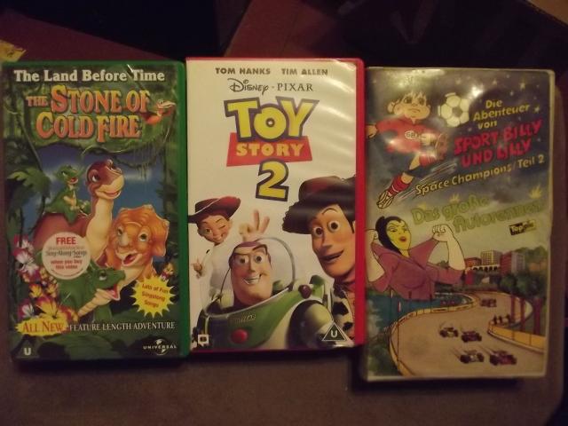 vhs vaizdajuostes (animaciniai): stone of coldfire,toy story2,sport billy und lilly/das grose autorennen