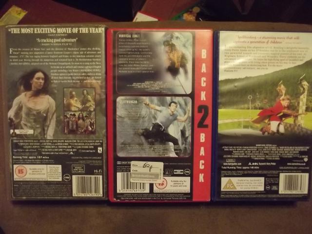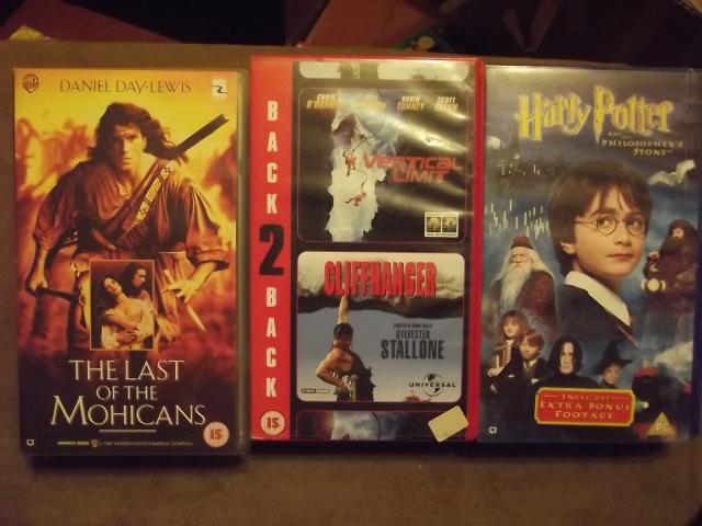 vhs vaizdajuostes : last of the mohicans, vertical limit+cliffhanger, h.potter and the philosopher's stone