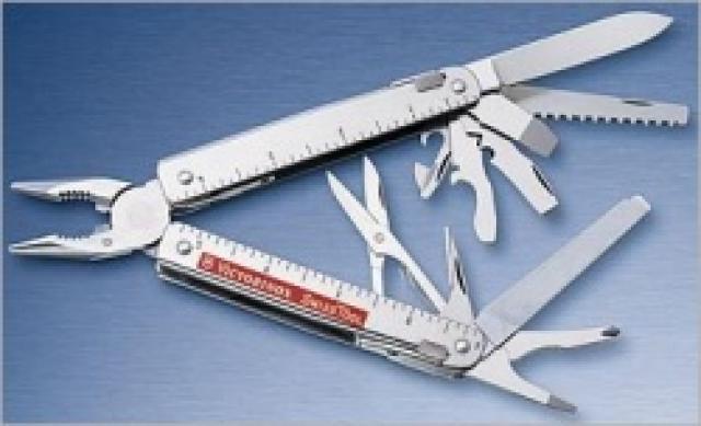Visiskai naujas sveicaru firmos turistinis (peiliuku ir visokiu kitokiu nesamoniu) rinkinukas, su odiniu deklu, gera dovana zvejui, medziotojui, ar siaip prie ukio, uz puse kainos. :-) Visa info CIA- http://www.swissma.de/en/web/victorinox_swisstool_x.html